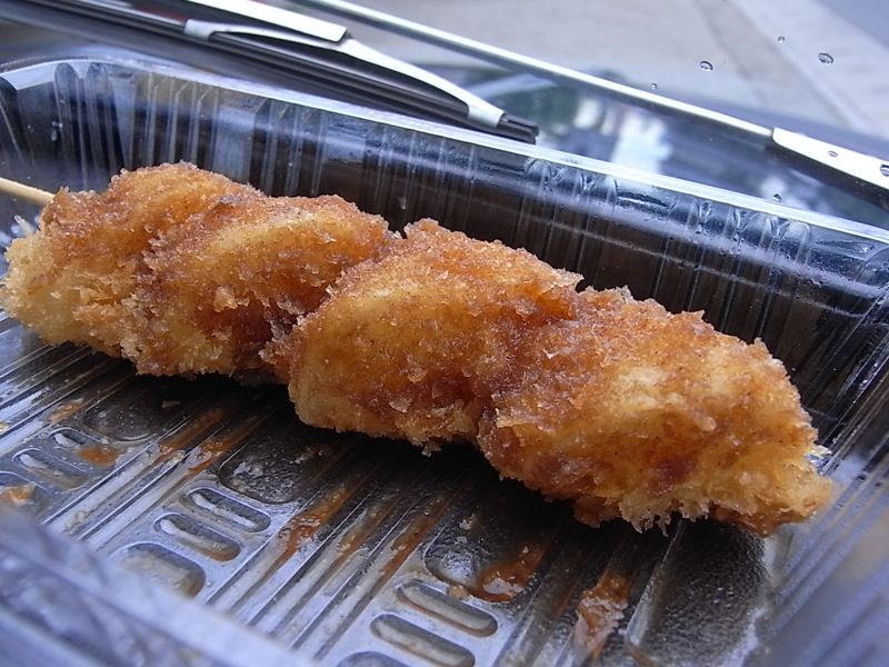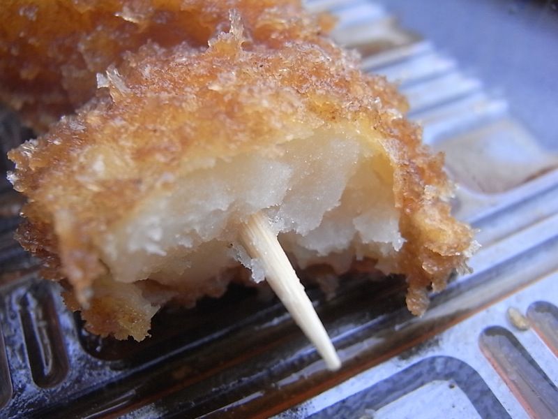 4つのおいもが串にささり、キツネ色した衣にソースがいい感じに染みてて、