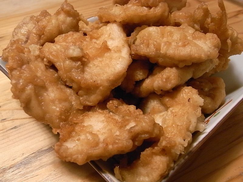 鶏肉は鳥皮のついていないむね肉なので、ちょっとパサパサ感はあるものの、旨味が軽くするしっとり柔らかな衣をまとったことで、美味しい唐揚げに仕上がってます。