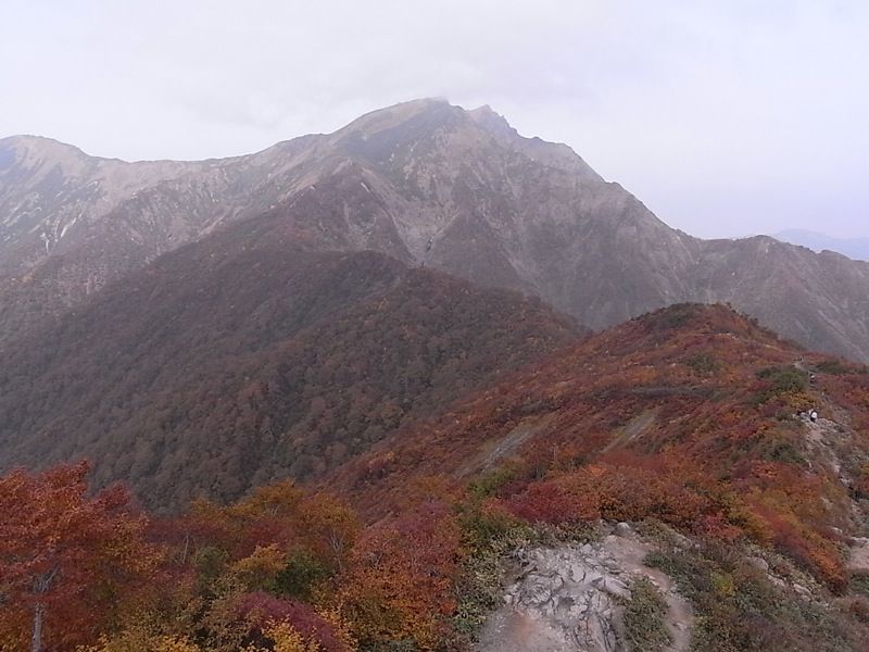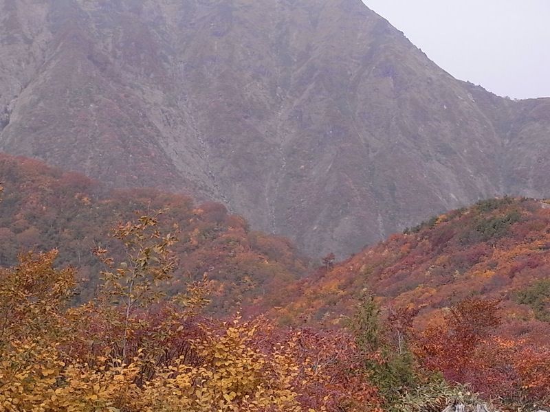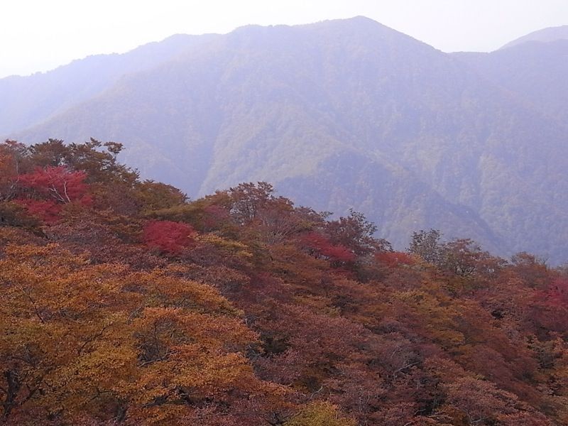 雄大な眺望も色づいた紅葉も曇った天候の下では、なんだかぼんやりしちゃってます。