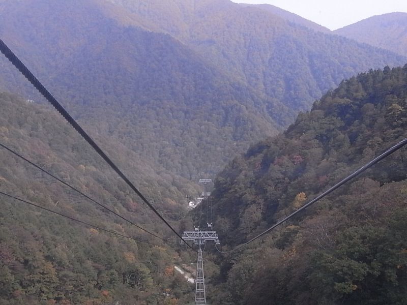 だんだん高度を上げるにつれ、木々の葉が赤や黄色に変化していき、