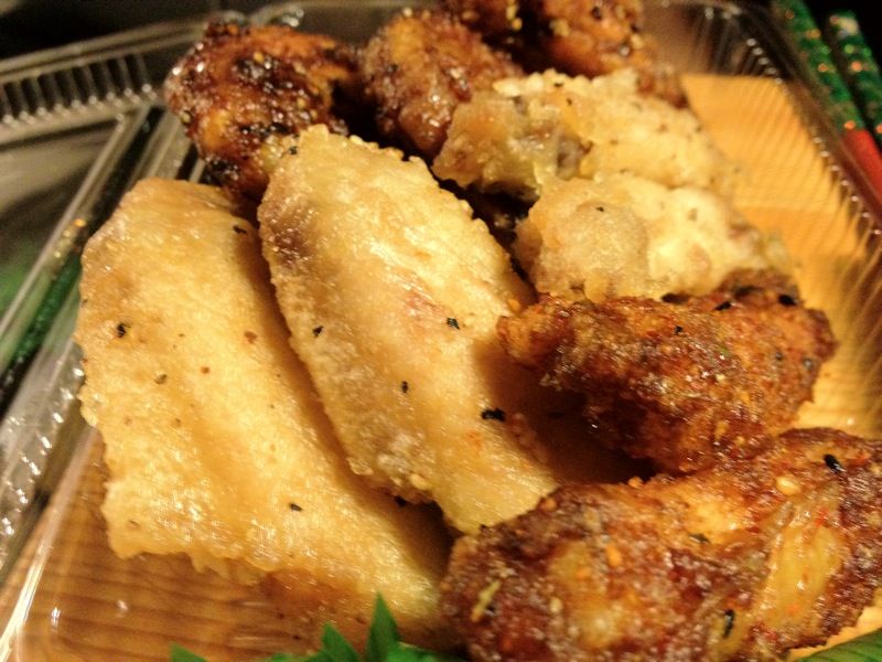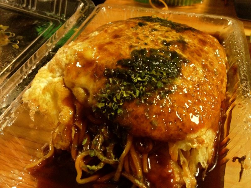 広島焼きと“空とぶからあげ”唐揚げ盛り合せ。