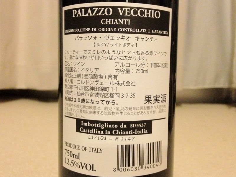 【パラッツォ・ヴェッキオ キャンティ データ】