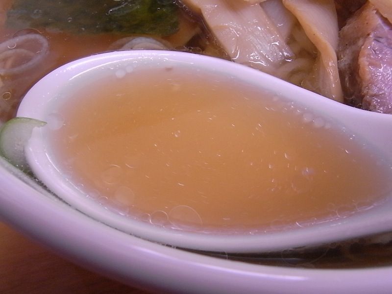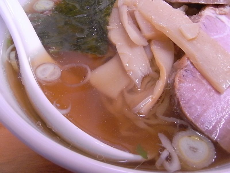 佐野ラーメンにしてはちょっと色が濃い目のスープ。