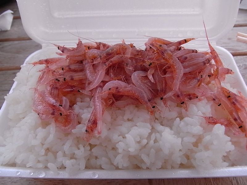 売店で白飯を買い、さっき買った生桜えびをのせて、