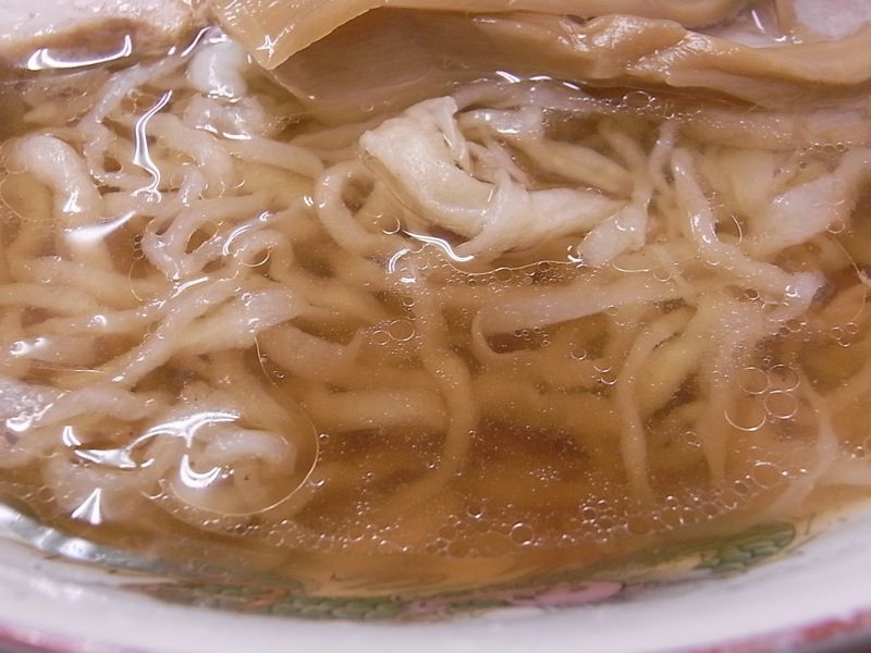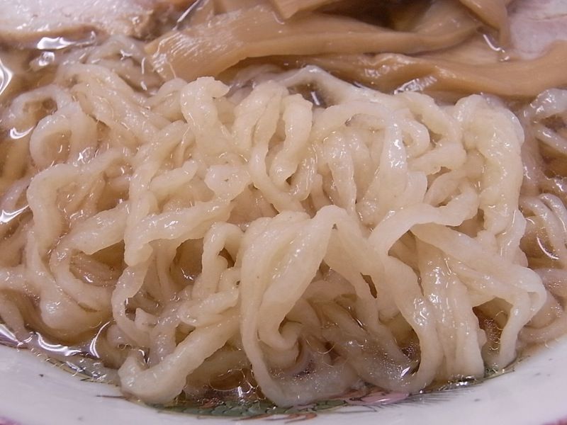 透明度の高いスープが多い佐野ラーメンにしては、色が濃い目。