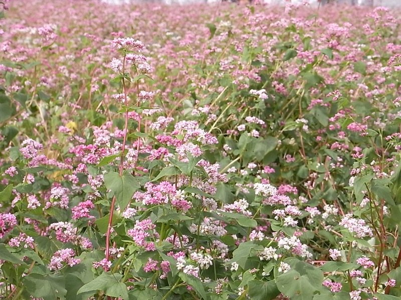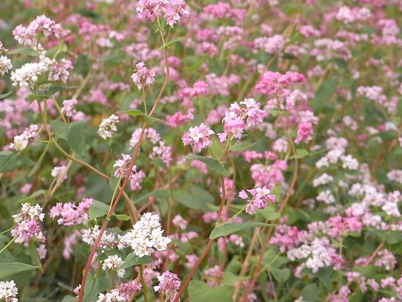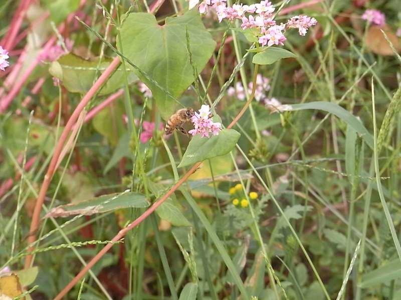 まだまだつぼみも、つぼみすらつけていないそばの花も、芽が出てきたばかりのそばの花もあるので、当分楽しめそうな赤いそば畑でした(^_^)