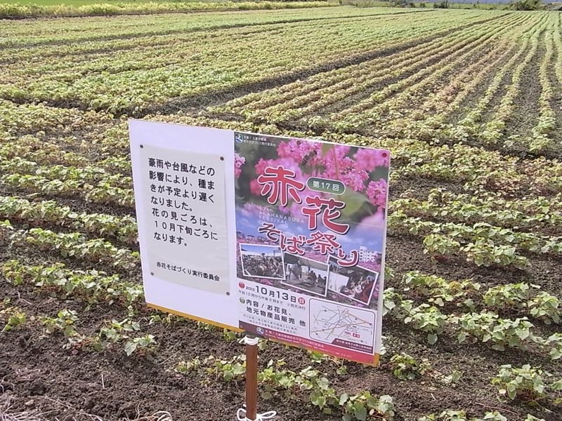 赤花そば祭りのポスターが掲げられているものの、ポスター左側には