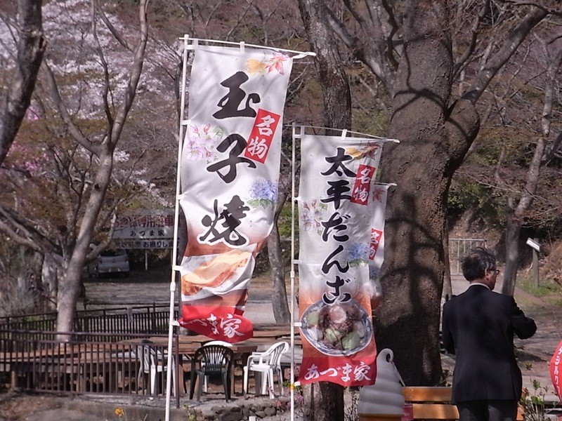 太平名物「玉子焼」「団子」「焼鳥」ののぼりがはためいて、食欲に訴えかけているものの