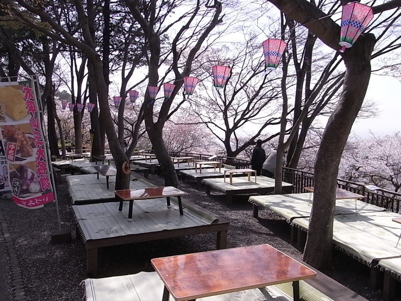桜のトンネルを通り抜け、見晴らしの遠景と共に桜を眺める、他にはあまりないお花見スタイル。