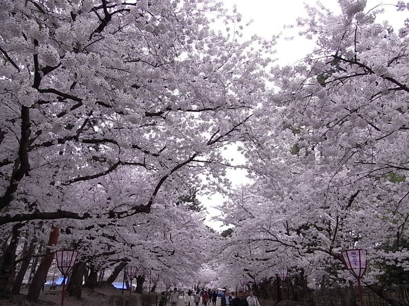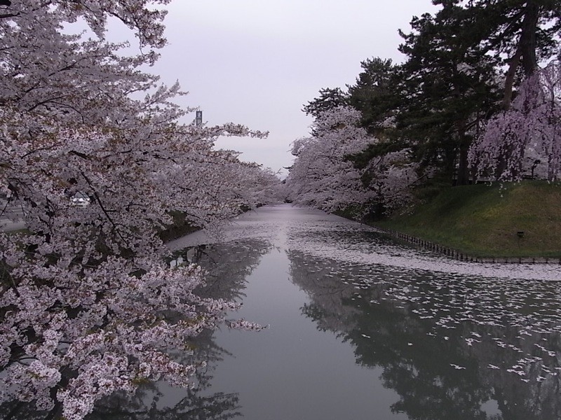 さらにさらに、弘前城の西側には道を挟んで両側に桜並木がつづく