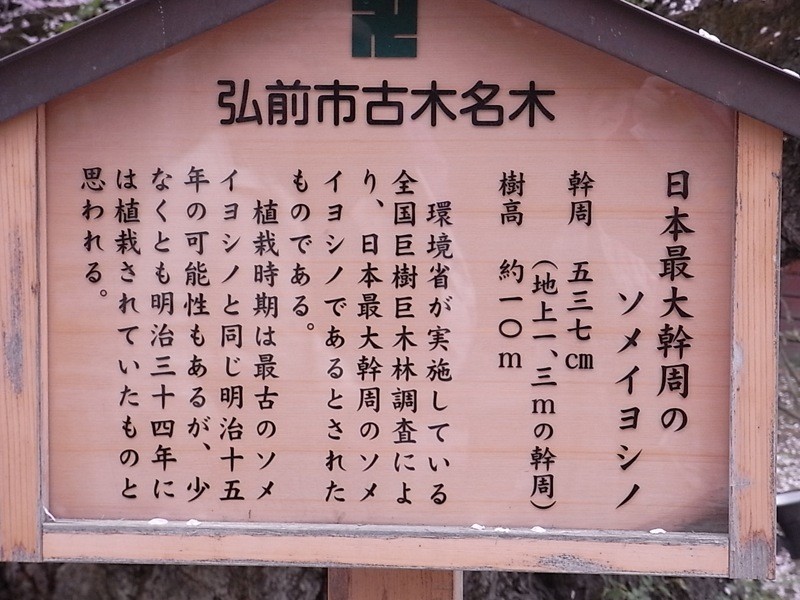 ソメイヨシノは生長が早いわりに寿命が60年から80年とされていたが、弘前公園のソメイヨシノは樹齢100年を越すものが300本以上あって立派に花を咲かせていることから、その管理技術は多くの専門家から日本一と絶賛されている。