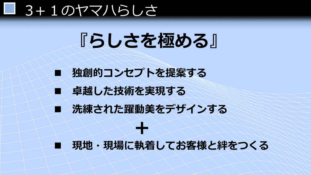 この“らしさ”の中で「洗練された躍動美をデザインする」には大きく納得。