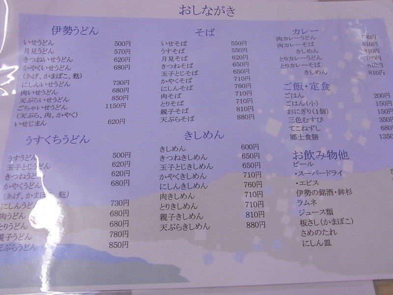 伊勢うどん、うすくちうどん、そば、きしめん、カレー