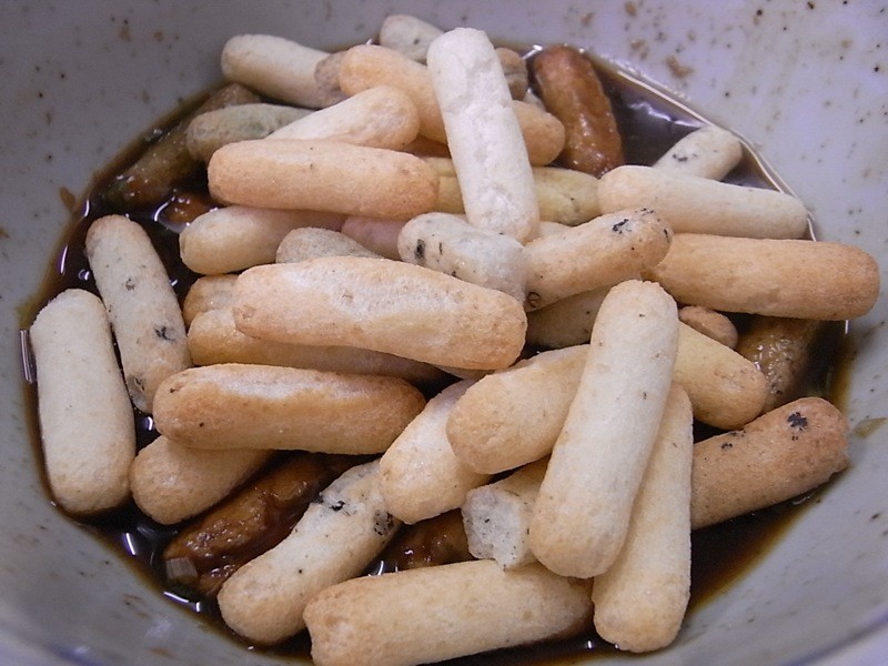 パリっとしてた田舎あられも、かなりお茶漬け的に柔らかくなってきてます(^_^)