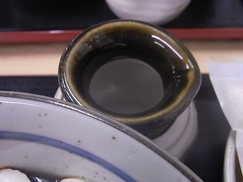 たまり醤油ベースのつゆ(タレ?)は、色は真っ黒ながら、味付けは若干薄く感じるほど。