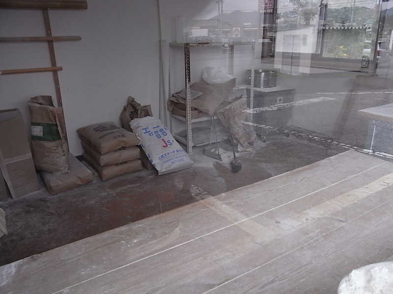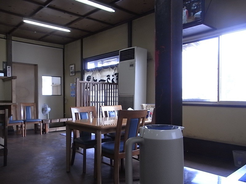 麺を打つ作業場(?)がガラス越しに見え、使い込まれた道具の数々が見受けられます。