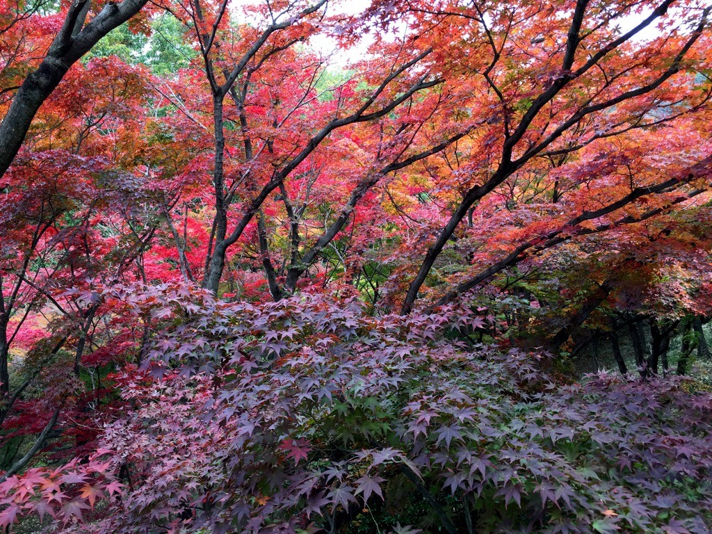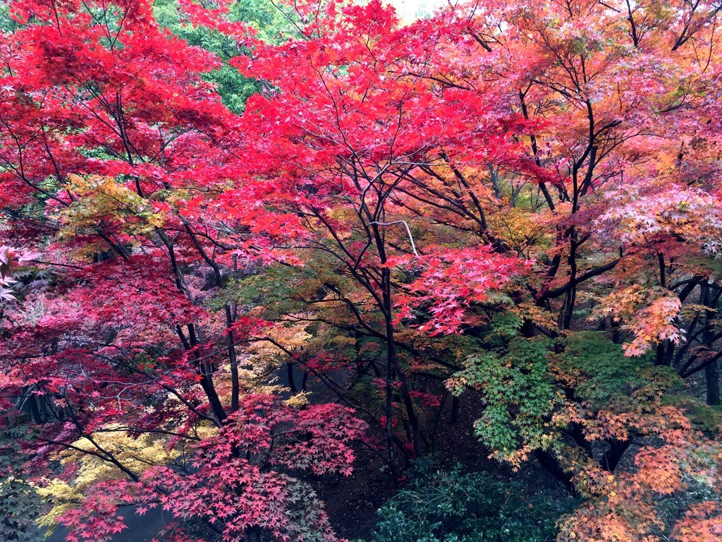 「もみじ谷」を一旦下り、階段を上ると、一段高いところからもみじを眺めることができます。