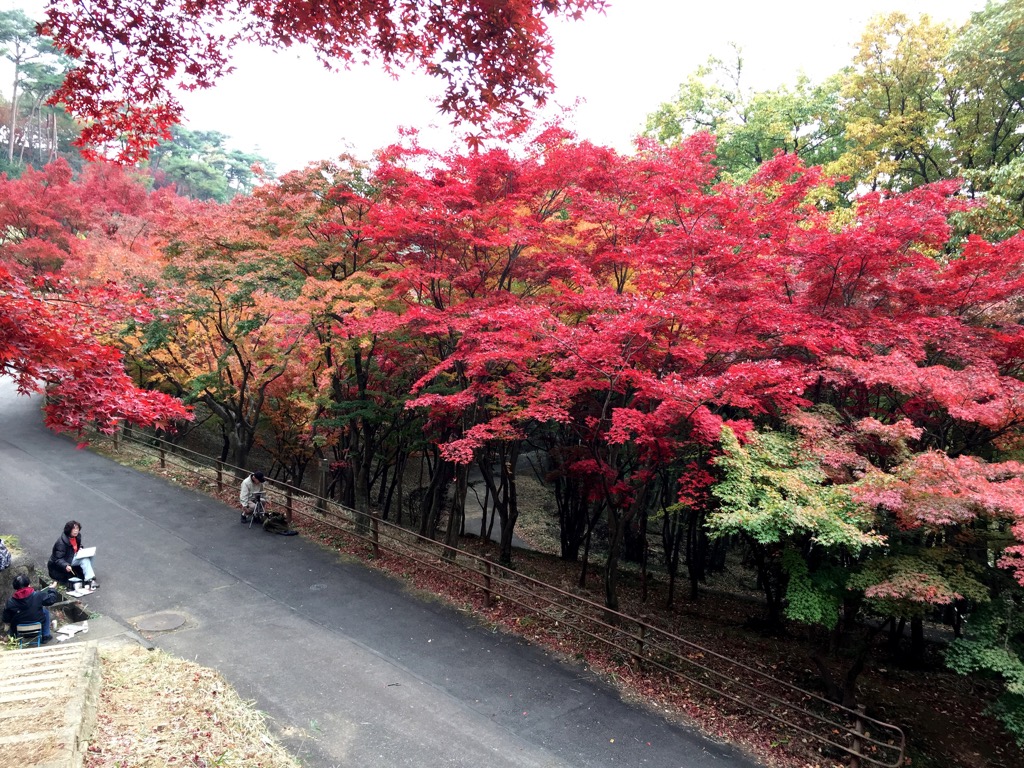 階段を上る手前でもみじを写生している人たちも下に見えます。