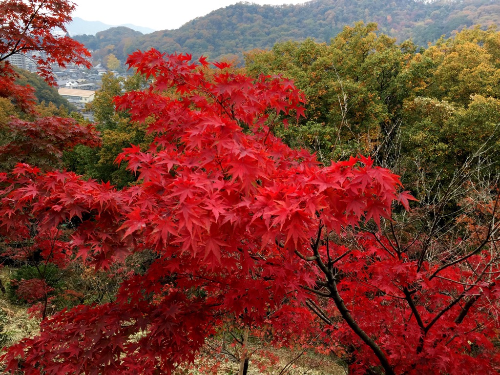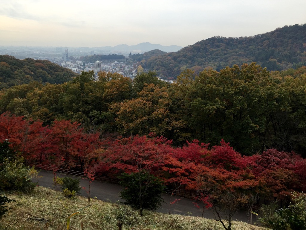 上からのもみじ谷の紅葉と遠くに広がる足利市街の街並みも望むことができます!