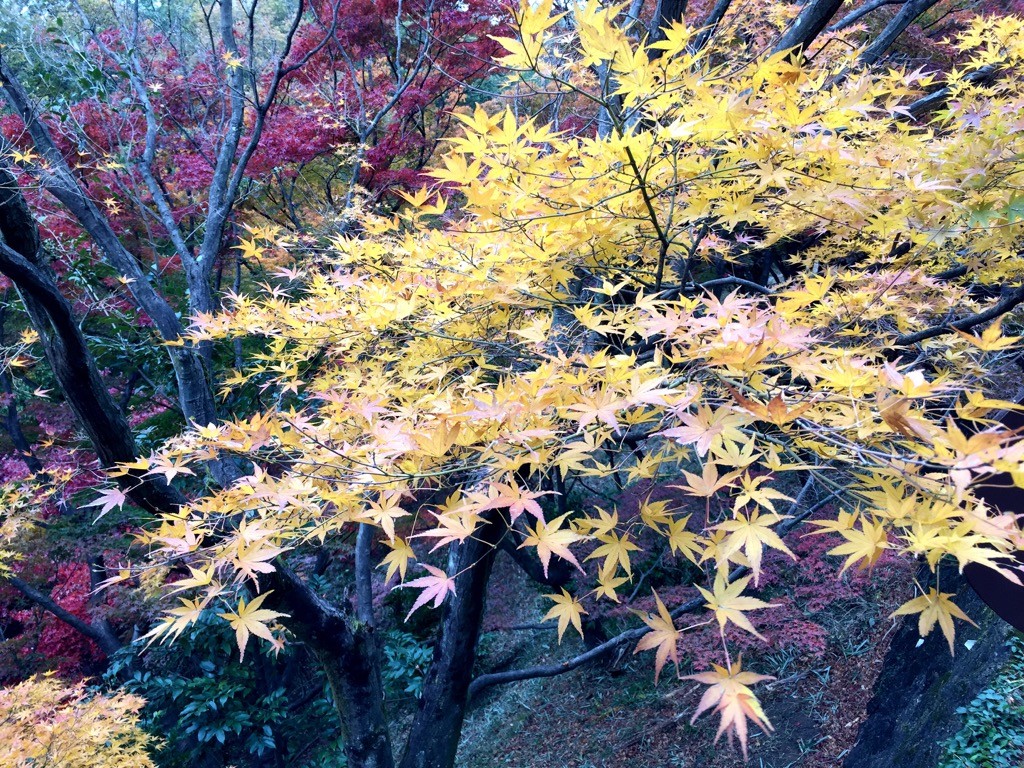 ただここのもみじの紅葉は、一斉に赤くなるのではなく、まだ黄色いもみじもあれば
