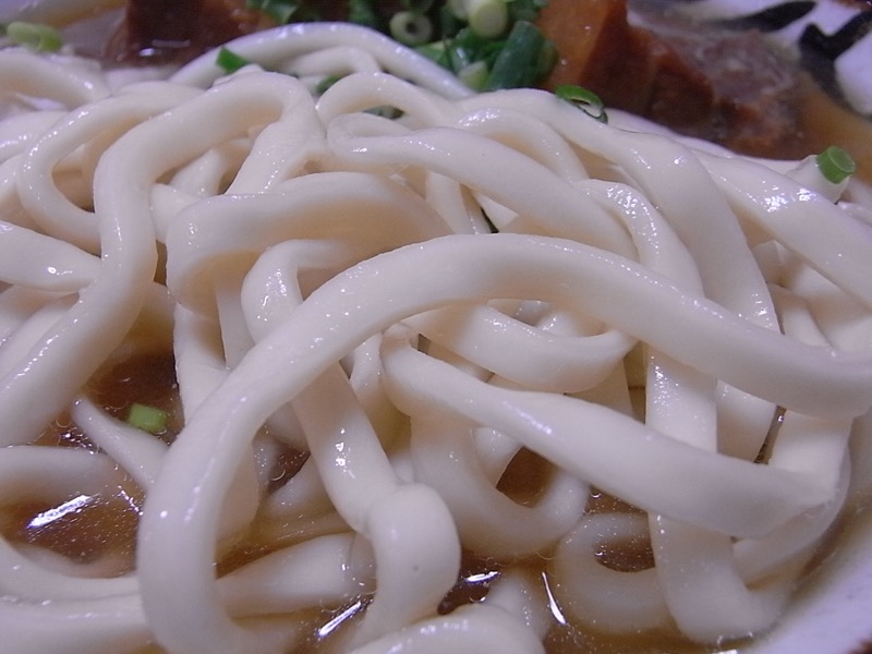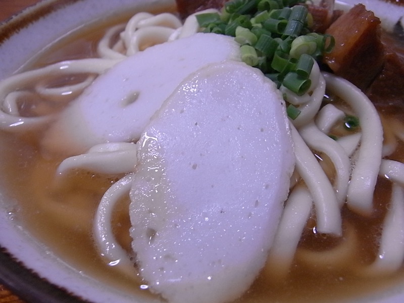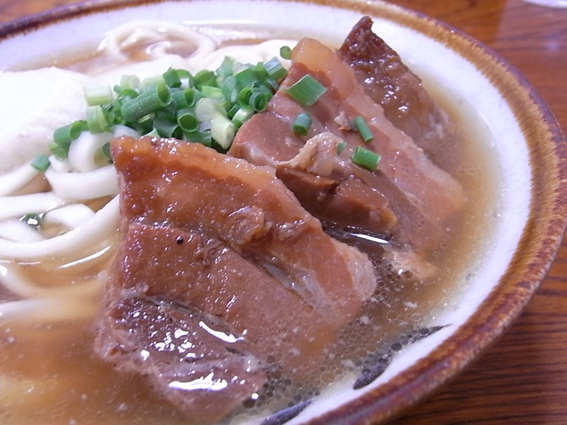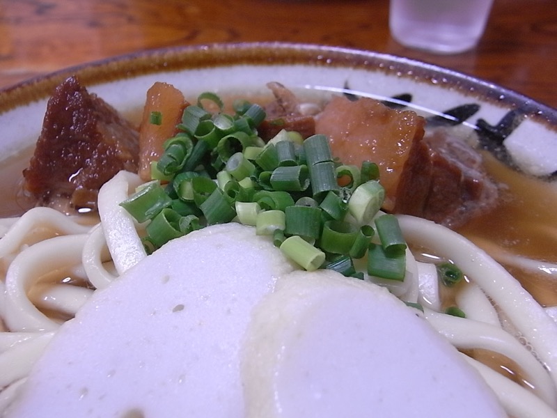 灰汁の上澄みが効いているのか、他で食べた沖縄そばと比べて、明らかに麺のコシが違って、コシのある歯ごたえが美味しさとなっています(^_^)