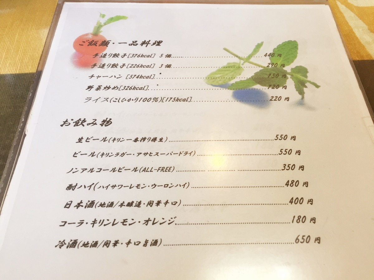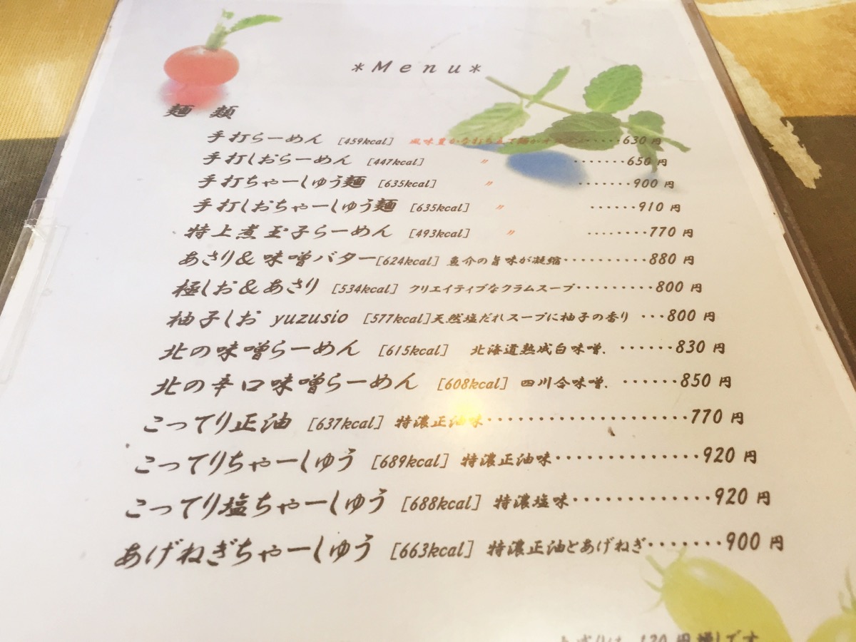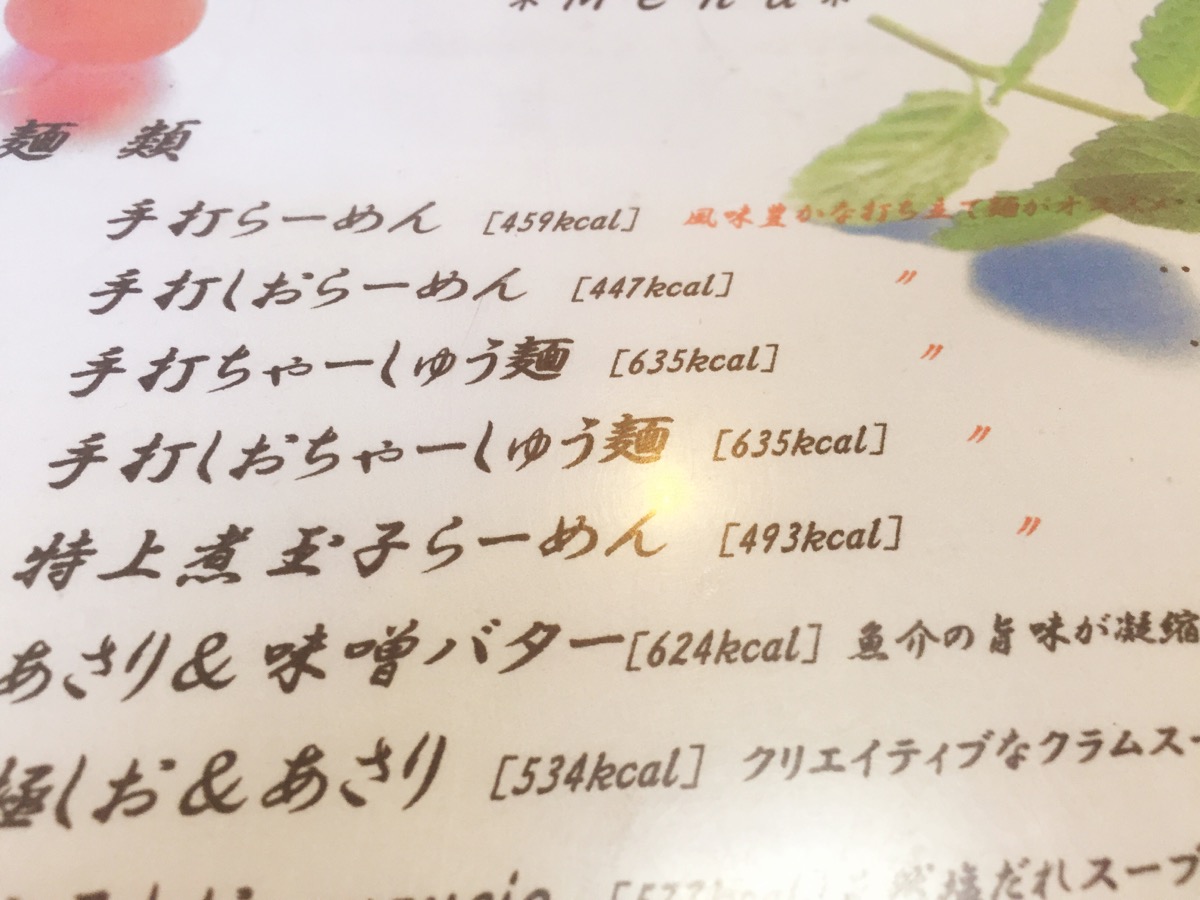 注文後、改めてメニューを見ると