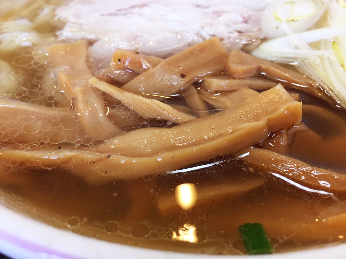 醤油の味が目立っているものの、魚介系と鶏ガラの出汁がじんわり効いてて、味わい深さを演出しています。